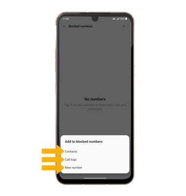 BLOCK NUMBERS: From the Blocked numbers screen, select the