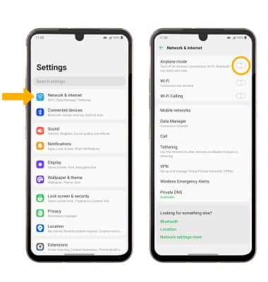 Airplane mode will disable all wireless services on the device. Calls, data, and text messages cannot be sent or received. Disable Airplane mode to restore regular device function.
