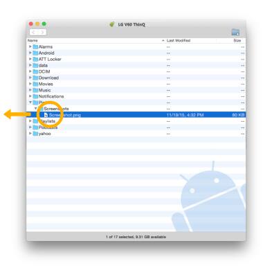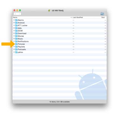 4. Once the phone is connected to the computer, the Android File Transfer app will open automatically. Select the desired folder to transfer files to/from.