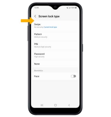From the Lock screen screen, select Screen lock type > enter your current screen lock > select the new desired screen lock type and follow prompts to complete set up.