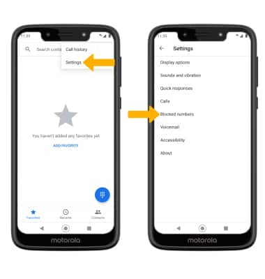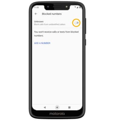 BLOCK NUMBERS: From the Blocked numbers screen, select ADD A NUMBER. Enter the desired number, then select Block.