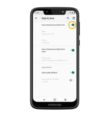 3. Select the Use network-provided time switch to place it in the Off position.