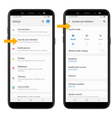 Settings icon. Select Sounds and vibration then edit sound settings as desired.