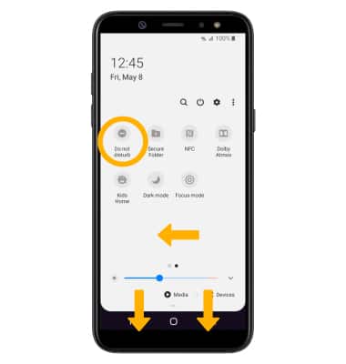Swipe down from the Notification bar with two fingers, then swipe left and select the Do not disturb icon.