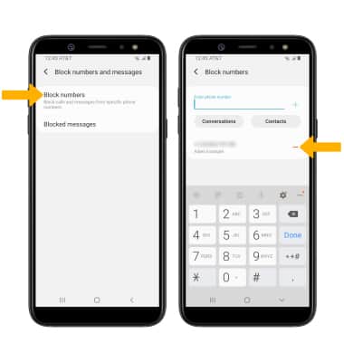 2. Select Block numbers. Select the Remove icon next to the desired number to unblock.