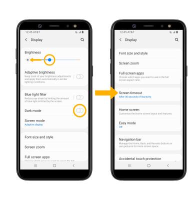 • DECREASE SCREEN TIMEOUT: Scroll to and select Screen timeout then select the desired option.