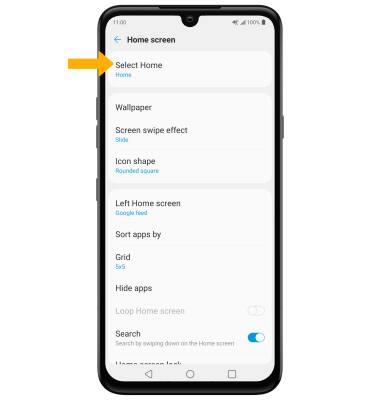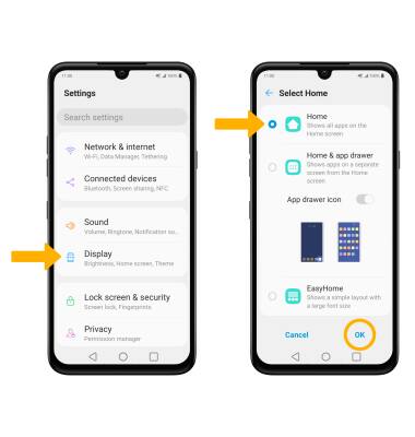 6. Select Display > Home screen > Select Home > Home > Apply.