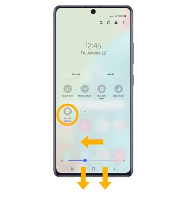 Swipe down from the Notification bar with two fingers. Swipe left, then select Do not disturb.