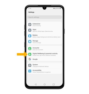 Settings icon. Scroll to and select Digital Wellbeing & parental controls.