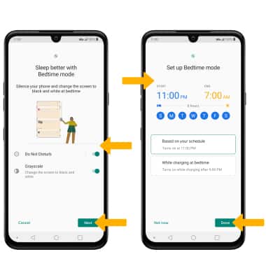 1. Enabling Bedtime mode will automatically darken your screen and set your phone to Do Not Disturb during sleeping hours. From the home screen, swipe down from the Notification bar, then select the