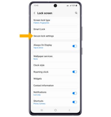 ENABLE: Lockdown mode turns off Smart Lock, biometrics unlock and notifications on the Lock screen. From the Secure lock settings screen, select the Show Lockdown option switch.