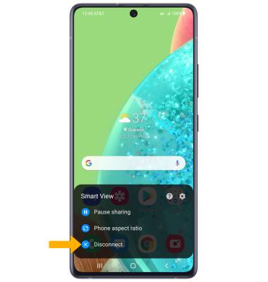 Note: Alternately, you can turn off Screen projecting through Quick Settings. Swipe down from the Notification bar with two fingers > swipe left > select Smart View. The device will disconnect.