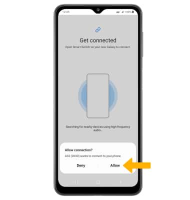1. If using Samsung Smart Switch for the first time, you have to grant Smart Switch permission to access Phone, Contacts, Calendar, Text messages, Storage, Microphone and Location. From the permissions screen, select Allow.