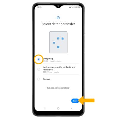 Note: If you select Custom, you will have the option to transfer specific content from your old device to your new one.