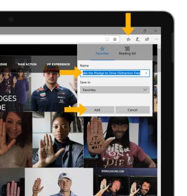 From the desired site, select the Bookmark icon. Enter the Name, then select Add.
