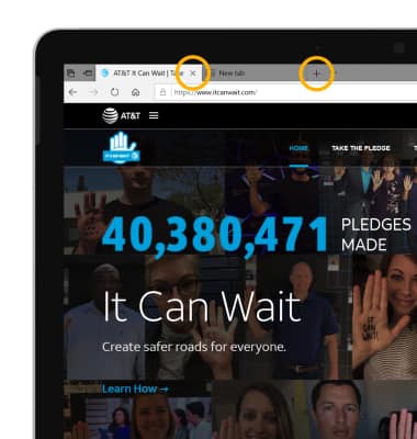 2. To open a new browser tab, select the New Tab icon. To close a browser tab, select the X icon on the desired tab.