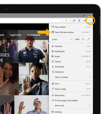 Use InPrivate windows if you don't want to save a record of what you visit and download. Browser history, cookies, and search history will be deleted after you've closed all of your InPrivate tabs. From the browser, select the Menu icon then select New InPrivate window.