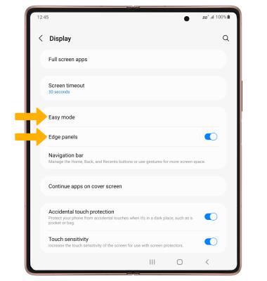 • EDGE SCREEN: Select Edge panels, then edit Edge screen settings as desired.