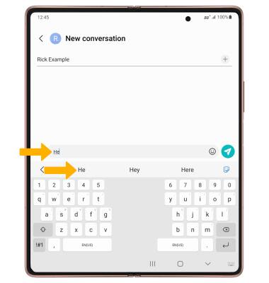 When typing a word, three suggestions will appear at the top of the keyboard. Select the desired suggestion to enter it into the text field.