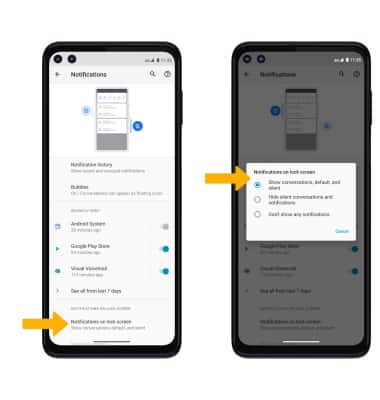 From the Notifications screen, select Notifications on lock screen then select the desired option.