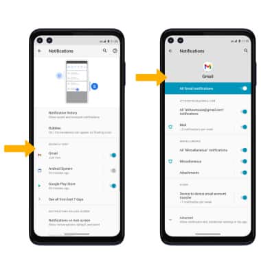 From the Notifications screen, select the desired app > adjust notification settings as desired.