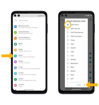 From the Settings screen, select Sound > Advanced > scroll to and select Default notification sound > navigate to and select desired sound > select OK when finished.