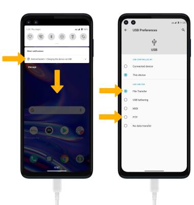 2. To place the device into the correct USB mode, swipe down from the Notification bar then select the Android System drop down menu > Charging notification > File Transfer or PTP.