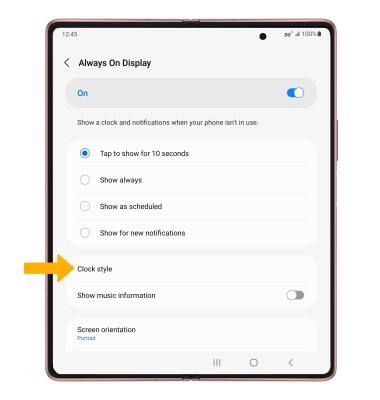 1. From the Always On Display screen, select Clock style.