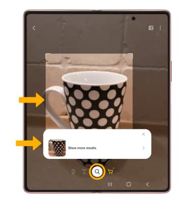 1. Select the Search icon. Point the device's camera at an object or location. Bixby Vision will automatically identify the object or location. Select Show more results.
