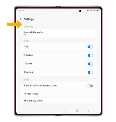 2. From the Camera app, swipe left to MORE then select BIXBY VISION.