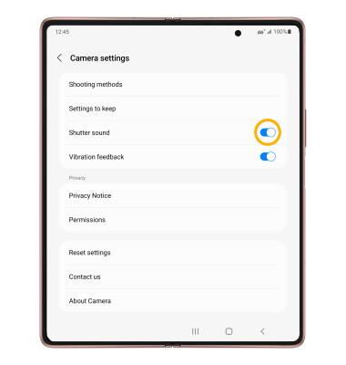 From the Camera settings screen, scroll to and select the Shutter sound switch.