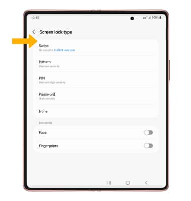 From the Lock screen screen, select Screen lock type > enter your current screen lock > select the new desired screen lock type and follow prompts to complete set up.