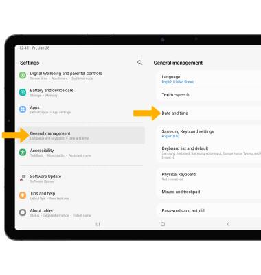 2. Scroll to and select General management, then select Date and time.