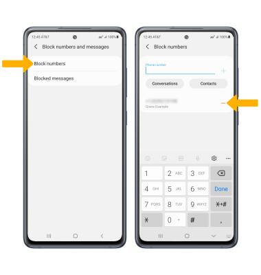 2. Select Block numbers. Select the Remove icon next to the desired number to unblock.