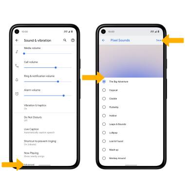 From the Sound & vibration screen, select Phone ringtone. Navigate to and select the desired ringtone, then select SAVE.
