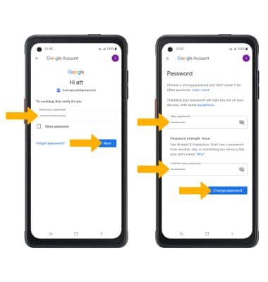 3. Enter your password and select Next. Enter and confirm your new password, then select Change password.