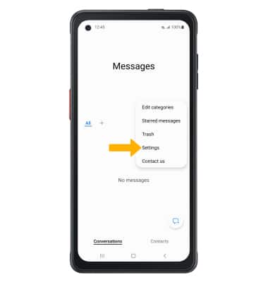 • ACCESS SMS SETTINGS/VIEW MESSAGE CENTER NUMBER: Select More settings > Text messages. The Message Center number will also be displayed on the Text messages settings screen.