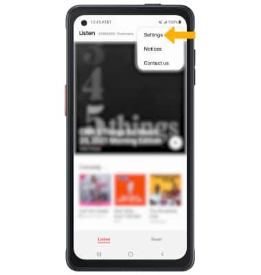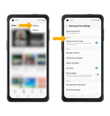 Menu icon at the top of Samsung Free, then select Settings. Edit settings as desired.
