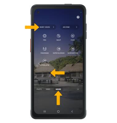 2. From the Camera app, swipe left to MORE then select BIXBY VISION.