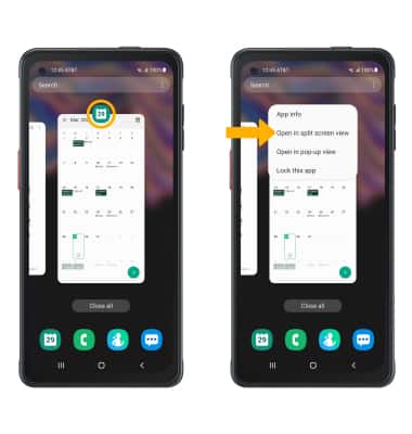 2. Select the desired app icon, then select Open in split screen view.