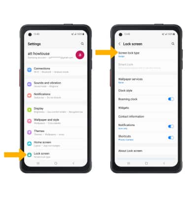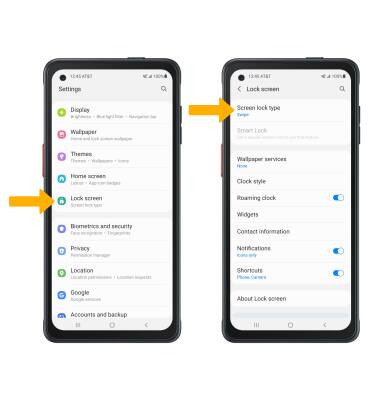 From the Lock screen screen, select Screen lock type > enter your current screen lock > select the new desired screen lock type and follow prompts to complete set up.