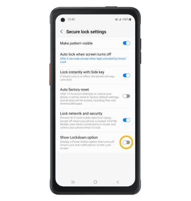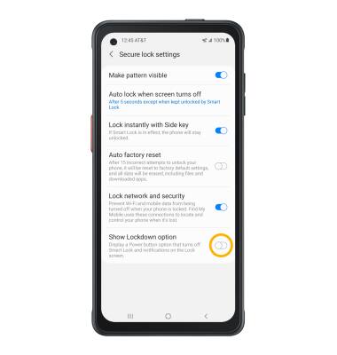 ENABLE: Lockdown mode turns off Smart Lock, biometrics unlock and notifications on the Lock screen. From the Secure lock settings screen, select the Show Lockdown option switch.