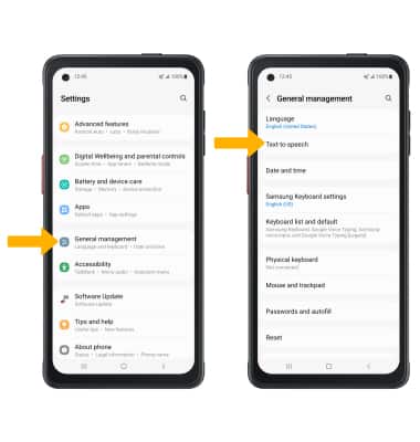 ACCESS: From the Settings screen, scroll to and select General management then select Text-to-speech.