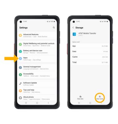 2. Scroll to and select Apps > desired app > Storage > select Clear cache.