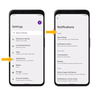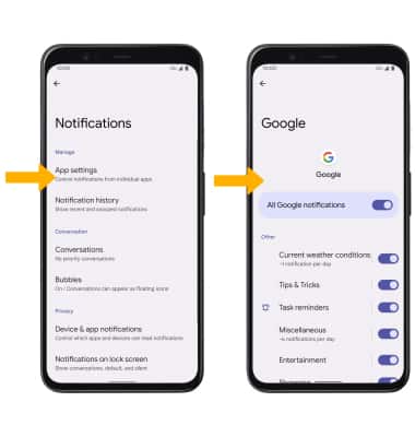 From the Notifications screen, select App settings select the desired app > adjust notification settings as desired.