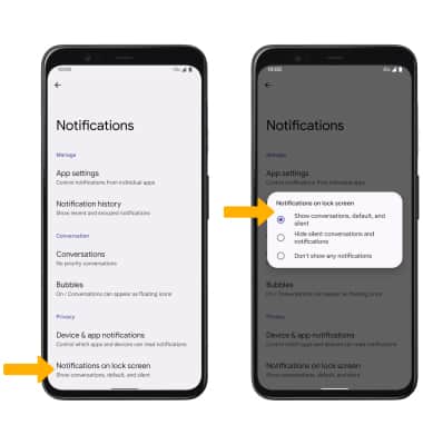 From the Notifications screen, scroll to and select Notifications on lock screen then select the desired option.