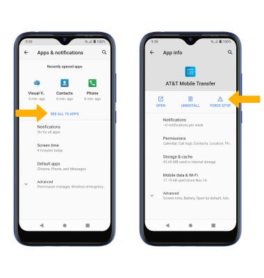 From the Apps & notifications screen, select SEE ALL APPS. Select the desired app, then select FORCE STOP.