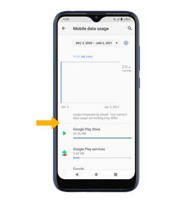 3. Select Data usage. Data usage for the current cycle will be displayed.