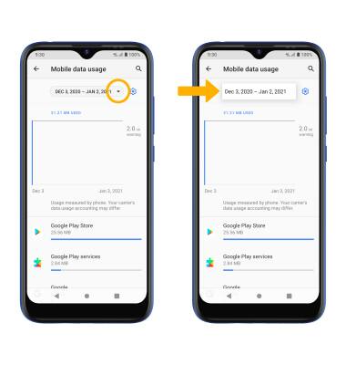 CHANGE DISPLAYED BILLING CYCLE: From the Mobile data usage screen, select the Data usage cycle drop-down icon then select the desired billing cycle.