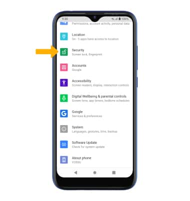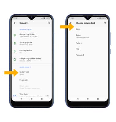 From the Security screen, select Screen lock > enter your current screen lock > select the desired screen lock type and follow prompts to complete set up.